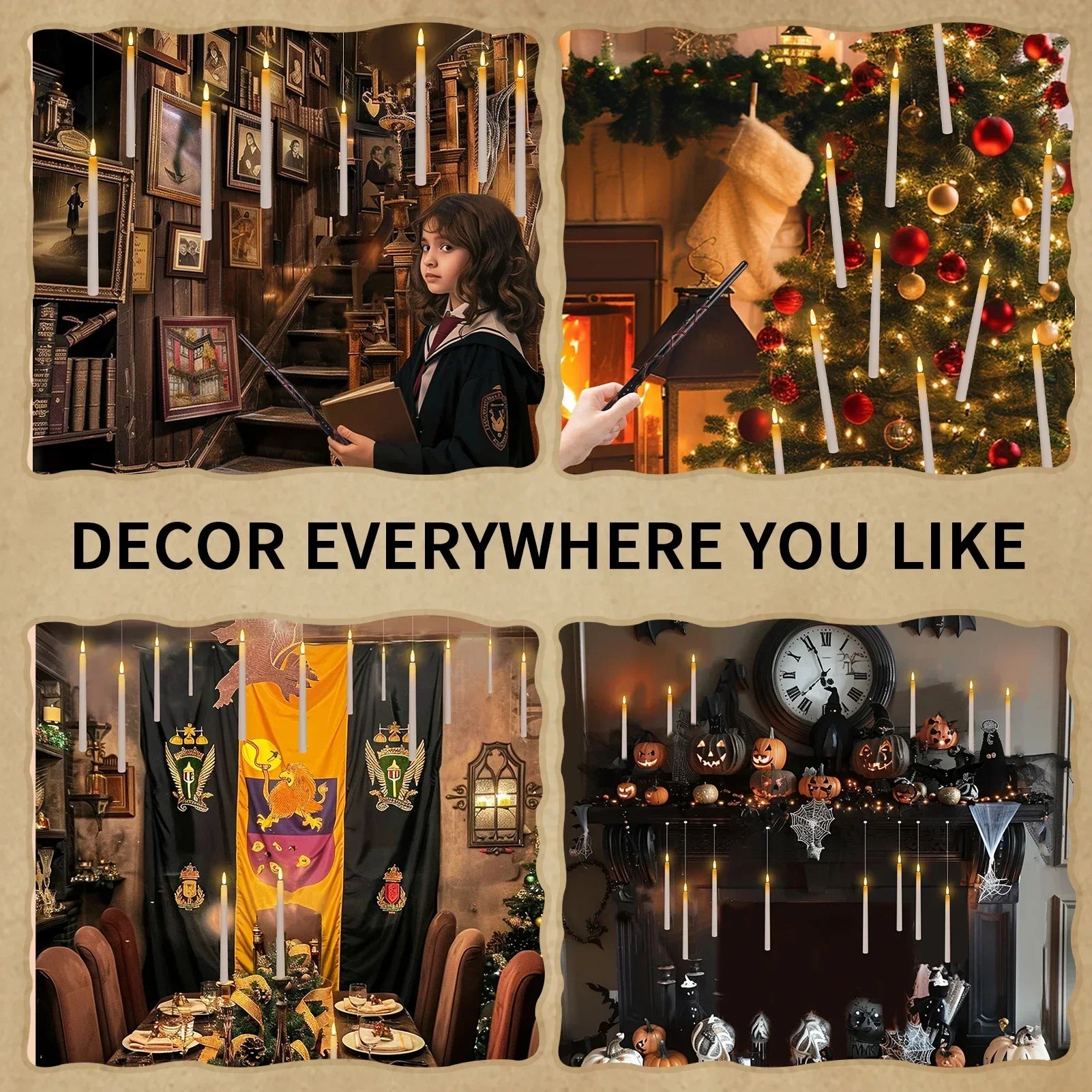 Add a touch of wizarding magic to your space with these LED taper floating candles — available in sets of 8 or 32, complete with a magic wand remote for enchanting on/off control. Perfect for Halloween, parties, or fantasy-themed room décor.